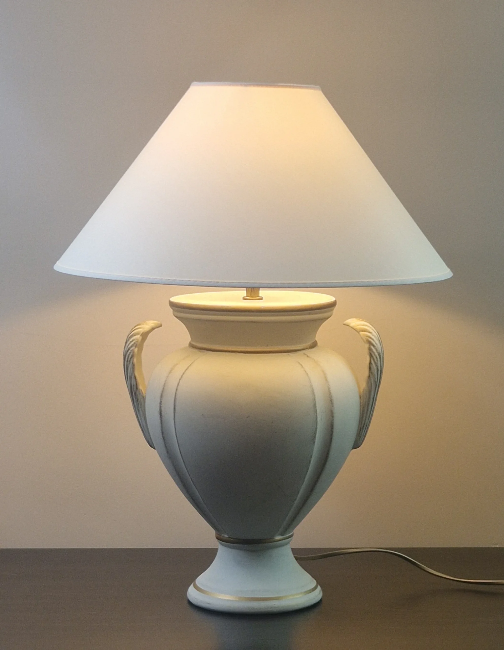 Stożkowy abażur o bardzo popularnym kształcie. Dostępny w jednym rozmiarze. Produkujemy go z chintzu w kolorze białym, kremowym i czarnym. Wykończony lamówką szytą.