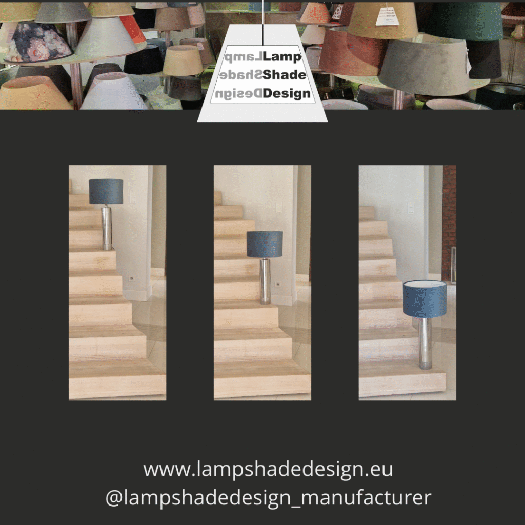 Zuerst müssen wir uns die Frage stellen: Wo soll die Lampe stehen? Wie man auf dem Bild sehen kann, wirkt derselbe Schirm je nach Höhe ganz unterschiedlich. Wenn wir die Lampe niedrig platzieren (z. B. auf einem Nachttisch), sollte der Schirm etwas kleiner sein. Andernfalls wird er zum auffälligsten Element und verdeckt den schönen Lampenfuß. Für höhere Flächen darf der Schirm gerne größer sein.